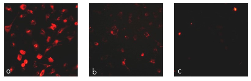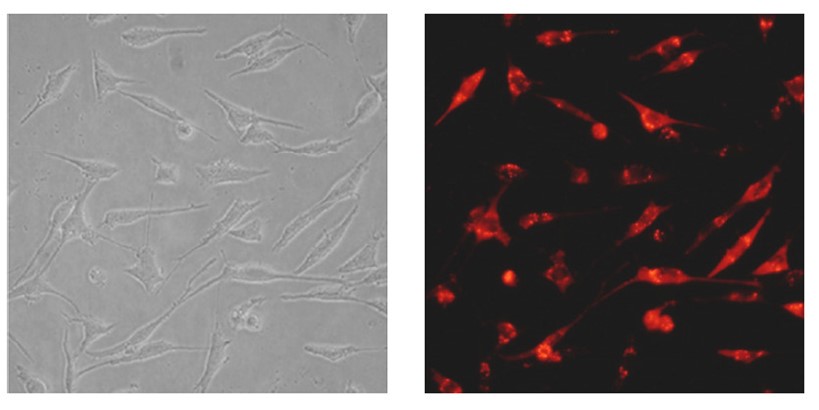 PULSin® can deliver R-phycoerythrin, a fluorescent protein (240 kD), into the cytoplasm of up to 98% of cells. The protein is evenly distributed in the cytoplasm and excluded from the nucleus due to its size.