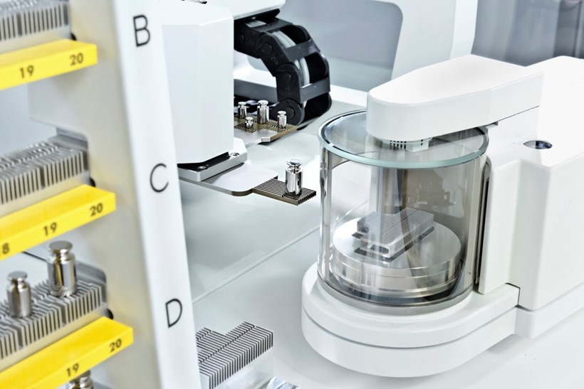 Dvojni robotski sistem Sartorius s patentiranimi večnamenskimi in enojnimi držali je zasnovan za hkratni nadzor referenčnih in testnih uteži. Dva upravljalca z enojno utežjo omogočata poenostavljeno in hitro upravljanje referenčne in preskusne teže neposredno med rezervoarjem in tehtalno celico. Sistem za ravnanje z dvojno več uteži in enojno težo lahko zbere do 4 uteži in referenčno težo. Štiri uteži se sestavijo na zbirni postaji in se nato izmerijo hkrati, tako da uteži ni treba vračati v rezervoar.