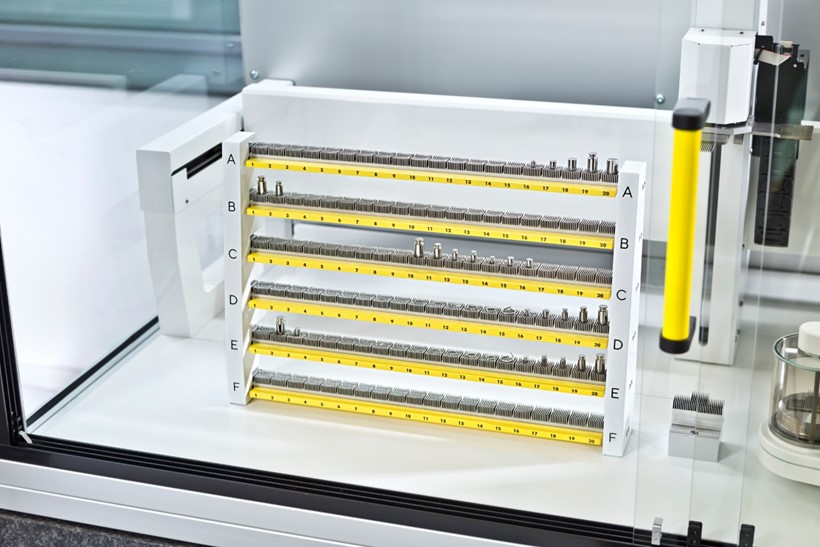 120 položaj rezervoarja omogoča nalaganje z velikim številom uteži in omogoča neprekinjeno obdelavo meritev čez noč ali ob vikendih. Sistem je zasnovan tako, da neposredno drži vse možne oblike uteži, ki se uporabljajo za uteži razredov OIML in ASTM, brez potrebe po dodatnih nosilcih ali držalih za uteži.