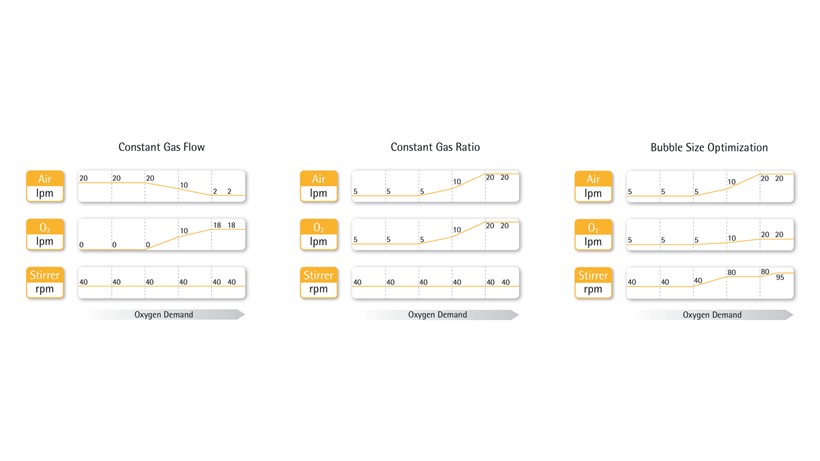 Poleg klasičnega krmiljenja DO smo razvili edinstven napredni krmilnik DO, ki vam omogoča večjo prilagodljivost pri razvoju in optimizaciji vaše strategije upravljanja DO. Napredni krmilnik DO podpira vzporedno prilagajanje vseh DO, ki vplivajo na nastavitve parametrov, kot so hitrost mešala in pretok zraka ter čisti kisik.