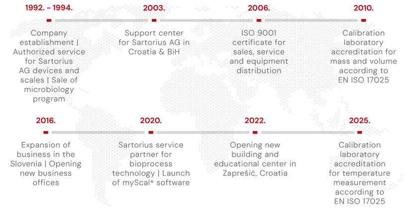 Our history dates back to 1992, when Sartorius Croatia officially began working. From the very beginning, we had a vision to become a reliable partner, a top service center and support and a technologically advanced leader in the profession in which we work.
